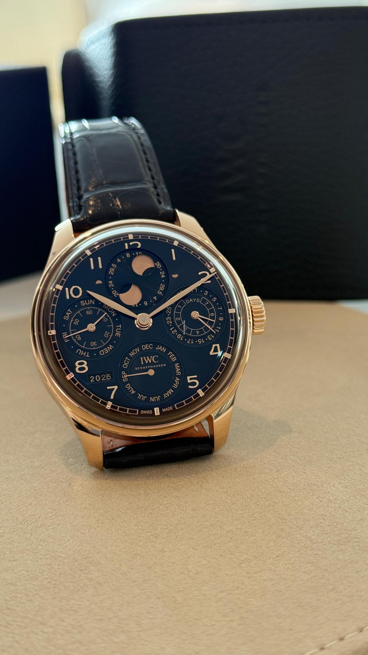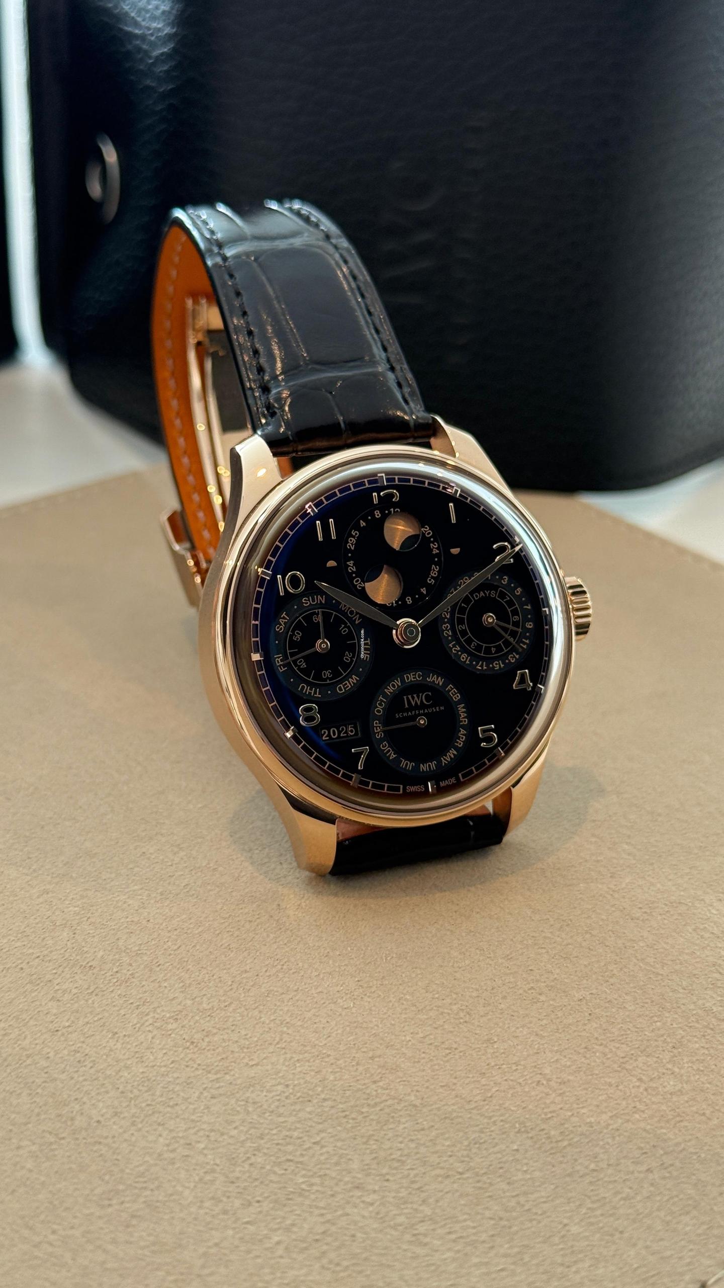 Inspired by exceptional craftsmanship and timeless design, the IWC Portuguese Perpetual Calendar embodies sophistication and precision. Crafted from N/A, this 2025 model reflects IWC’s dedication to elegance and performance.Powered by a Automatic movement, it delivers reliable accuracy and smooth operation. The Black bracelet ensures comfort and style in every detail.All prices shown include taxes and import duties for our European clients – there are no hidden fees.If your desired model isn’t currently available, our team will actively source it for you quickly and efficiently.More than a retailer, we are your trusted partner in the search for the perfect timepiece.